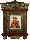 Икона - Божией Матери «Владимирская». (Деревянный киот, цвет "орех", литография, тиснение, стразы, багет, стекло. )